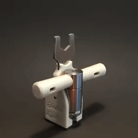 A flexure and a set of magnets keeps the handles in place.